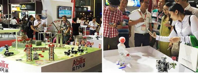 本次,能力风暴携机器人活动中心的经典项目及明星款家庭产品亮相展会,引爆现场与会者的强烈关注,争相与能力风暴的各款产品亲密互动:在用积木机器人搭建起来的机械游乐场中“驾车”巡游,与配备强大知识库的奥科流思做问答交流,欣赏珠穆朗玛类人机器人的劲歌热舞……能力风暴教育机器人多样化的种类,丰富的项目设计空间,领先行业的科技技术及体现在寓教于乐中超凡的教育加盟价值,无不令人赞叹。