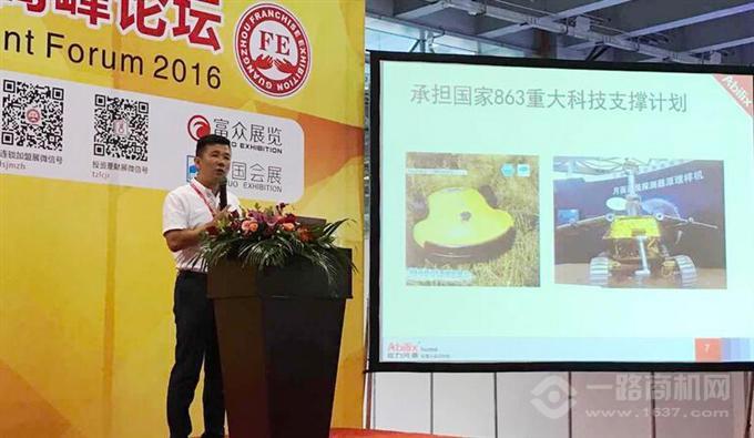 在9月23日展会现场的高峰论坛上,主办方特别邀请能力风暴做开场演讲,能力风暴加盟部招商总监张晓峰向现场观众介绍《能力风暴机器人活动中心市场前景》,指出这是一个拥有200亿容量的蓝海市场,拥有良好市场前景。