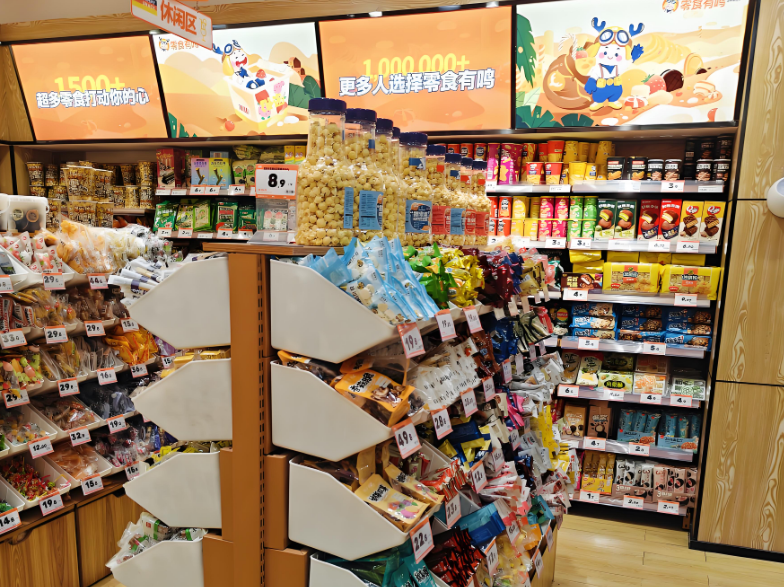 在流量获取成本高企的当下,零食有鸣会员可享受额外9折、免费送货等权益,目前付费会员复购率超过80%。同时,依托微信群和私域小程序,门店开展“晚间特卖”“临期品秒杀”等活动,将损耗率从行业平均的5%降至1.2%。这种“线上精准营销+线下体验”的双轮驱动模式,使其单店坪效达到传统零食店的1.8倍。