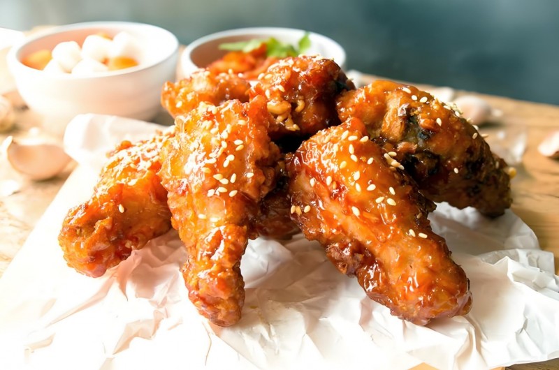 北村韩屋韩式炸鸡精选有机养殖鸡制作而成,色泽金黄、肉质滑嫩,搭配多种馅料、滋味鲜美、回味无穷