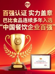 巴比食品再次斩获中国烹饪协会颁发的「中国餐饮企业百强」!