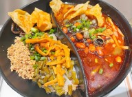 黄桷树下冒菜精心研制出底料,采用高品质的香料、辣椒、麻椒等经过数个小时的熬煮,底料色泽红亮,麻辣醇香,搭...