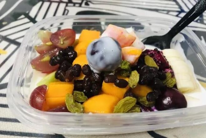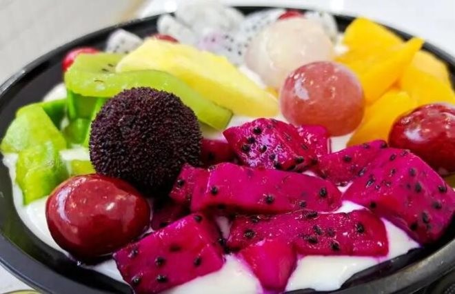 品牌水果捞手工现酿酸奶,放入草莓、哈密瓜及木瓜等大块果粒,每一颗果粒都被酸奶包裹。品牌水果捞店面一开人群沸腾,草莓、苹果、柠檬多样水果,切成果粒搅拌一起,食客品尝,有利于清洁肠胃。