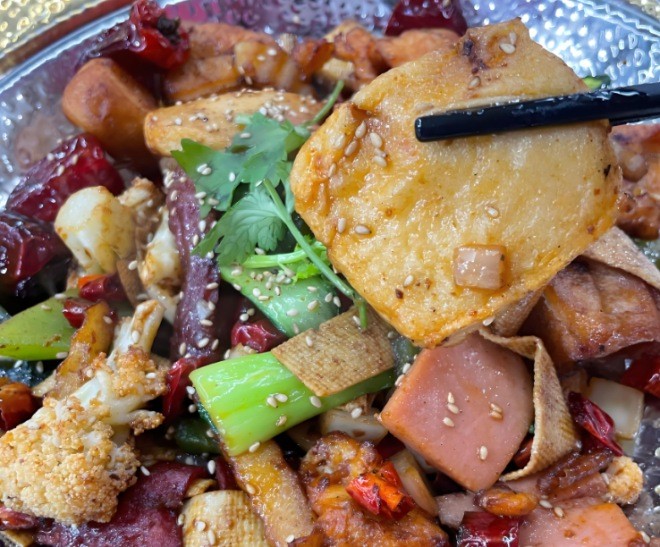 食仓麻麻辣香锅食材新鲜,香锅配菜入味十足,麻辣过瘾,每一口都在戳味蕾,连米饭都能多炫两碗。食仓麻辣香锅鸡肉咬下去嫩而不柴,完全没有干硬的口感;莴笋脆爽多汁,吸满酱汁后辣中带鲜;狼牙土豆外韧里软,每一口都能尝到香料的层次感,香锅整体是偏酱香型的麻辣,辣度适中不烧胃,麻味也恰到好处,不会掩盖食材本身的味道。