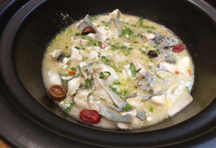 采用长江深六米以下鱼种,红茴和白茴为主要原料,其鱼肉质细腻,独骨无乱刺,炖出汤色牛奶般白皙,口感如干乳醇厚。
